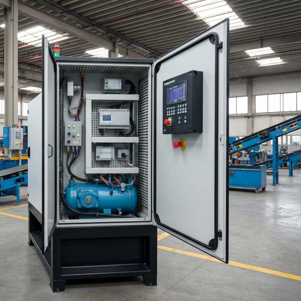 Falownik Inovance w kompresorze śrubowym steruje silnikiem trójfazowym (typowo 7.5kW–132kW) poprzez modulację szerokości impulsu (PWM). Układ regulacji PID utrzymuje ciśnienie sprężonego powietrza na zadanym poziomie (np. 7 bar lub 10 bar) poprzez ciągłą regulację prędkości obrotowej w zakresie 20–60 Hz. Cały układ jest nadzorowany przez procesor falownika, który monitoruje temperaturę, prąd, napięcie DC bus i stan wyjść cyfrowych sprężarki.