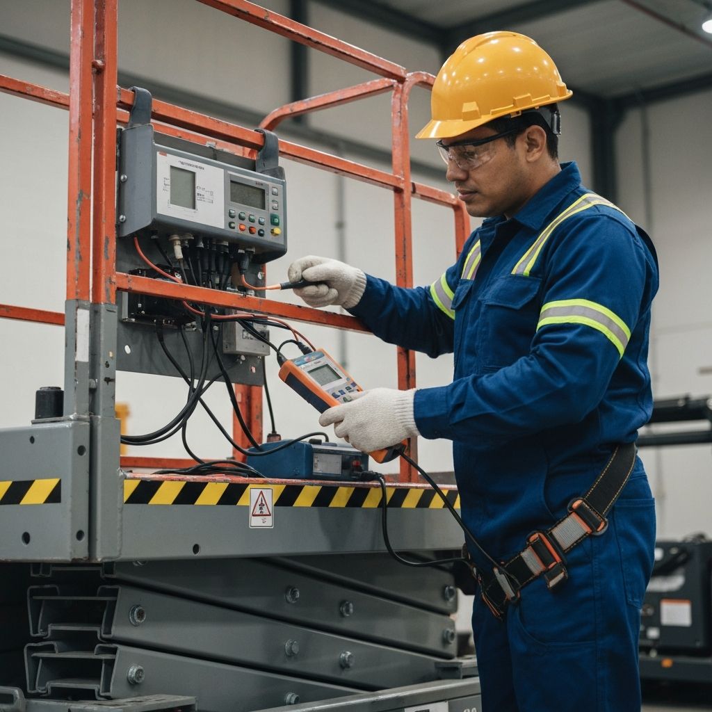 Profesjonalne pomiary elektryczne podestów ruchomych: nożycowych, masztowych i przegubowych. Rezystancja izolacji, ciągłość PE, test E-stop, system SLI. Protokoły zgodne z PN-EN 280 i UDT. Obsługujemy firmy w promieniu 30 km od Gliwic i Rybnika.